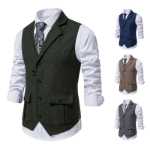 남성용 헤링본 트위드 트위드 정장 조끼
