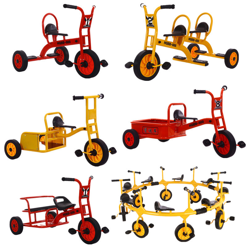 The new kindergarten tricycle is simple and generous, strong and durable.But multiple babies play together, thickened the frame, and can bear 150 pounds.