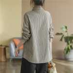 레트로 코튼과 린넨 스트라이프 긴팔 셔츠