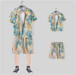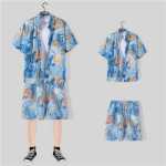 아이스 실크 반팔 꽃 셔츠 정장 남성 여름 얇은 하와이 프린트 셔츠 비치 팬츠 빅 팬츠 정장 남자