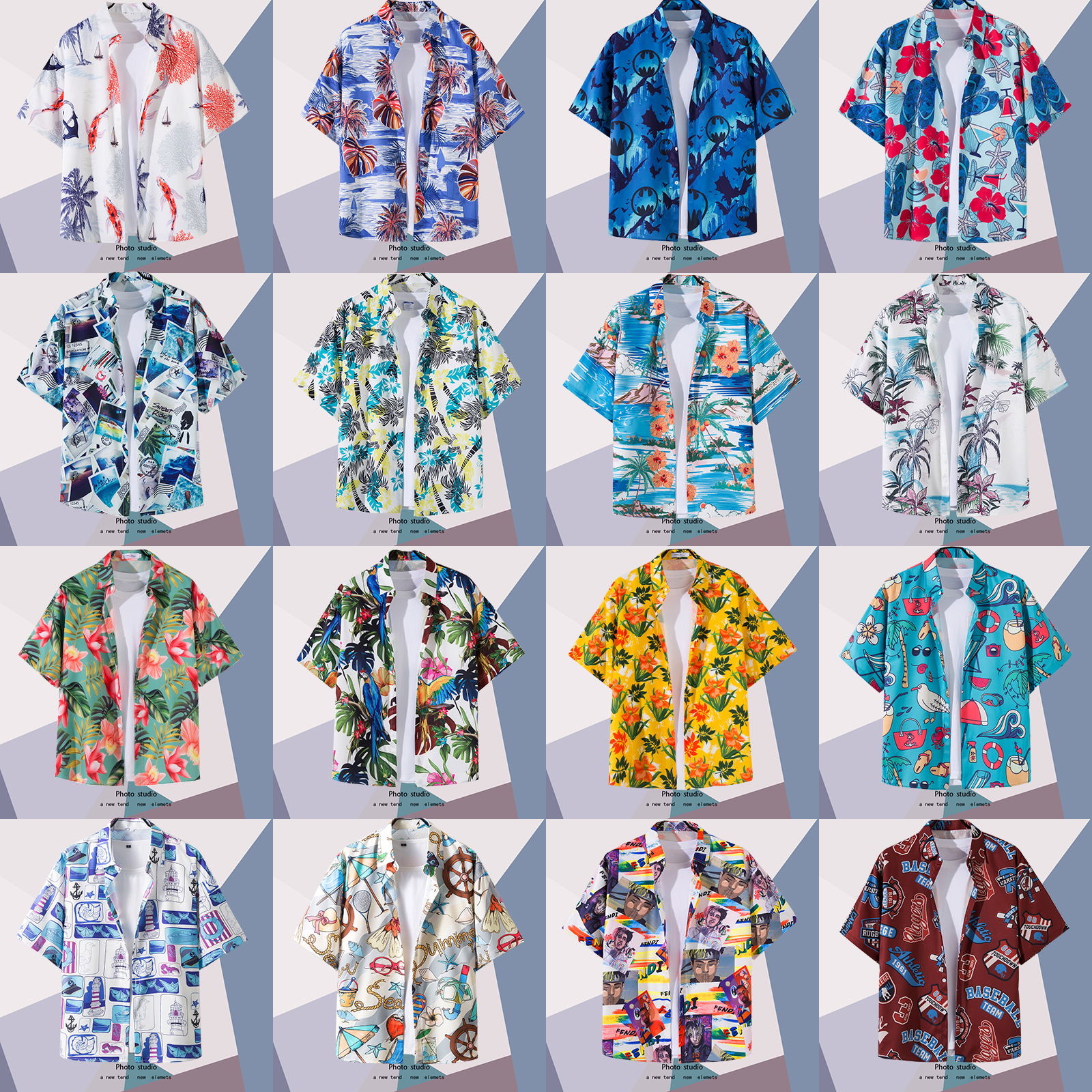 여름 느슨한 얇은 섹션 하와이 반팔 꽃 무늬 셔츠 남성 트렌드 캐주얼 반팔 해변 휴가 커플 셔츠