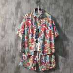캐주얼 하와이 셔츠 반팔 여름 트렌드 느슨한 일본 갱스터 잘 생긴 해변 커플 비치 셔츠 남성 및 여성