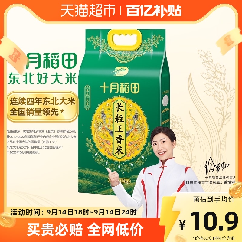 10월 벼 장립종 왕 향기로운 쌀 1.5kg 북동부 쌀 3kg 자포니카 쌀은 죽으로 만들 수 있습니다.
