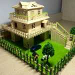이쑤시개 아이스크림 스틱 DIY 작은 집 나무 막대기 작은 나무 막대기 어린이 수제 샌드 박스 조립 모델 조립 재료