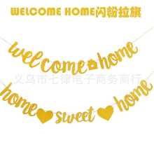 환영 홈 홈 모임 파티 장식 배너 환영 홈 가족 집들이 반짝이 풀 꽃