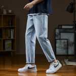 당 사자 23 새로운 청바지 남성 여름 얇은 섹션 슬림 작은 발 곧은 물 얕은 한국 조류와 긴 바지