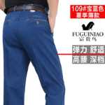 중년 및 노인 고탄성 청바지 남성 바지는 하이 웨이스트 느슨한 딥 기어 뚱뚱한 남자 아버지 바지 가을과 겨울 두꺼운 모델의 크기를 늘립니다.