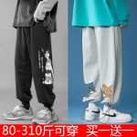뚱뚱한 플러스 사이즈 트렌드 바지 남성 2022 봄과 여름 새로운 뚱뚱한 홍콩 스타일 백 느슨한 다발 레저 가드 바지