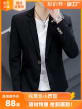 순수한 검은 색 정장 남성 재킷 캐주얼 봄과 가을 싱글 탑 한국 슬림 고급 비즈니스 정장 작은 정장