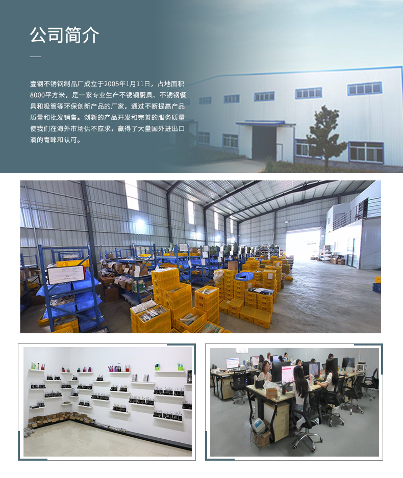 This factory specializes in the production of stainless steel kitchenware, tableware, shovel spoon, soup shell/leakage, straws, creative kitchen utensils, food clips, etc.