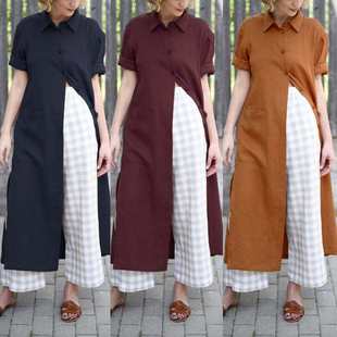 Cross -border e -commerce 2020 Speed Store Sales Spring New Bargaining Cotton Short Cotton Short Sleeve Loose Loose Large size Women's dress